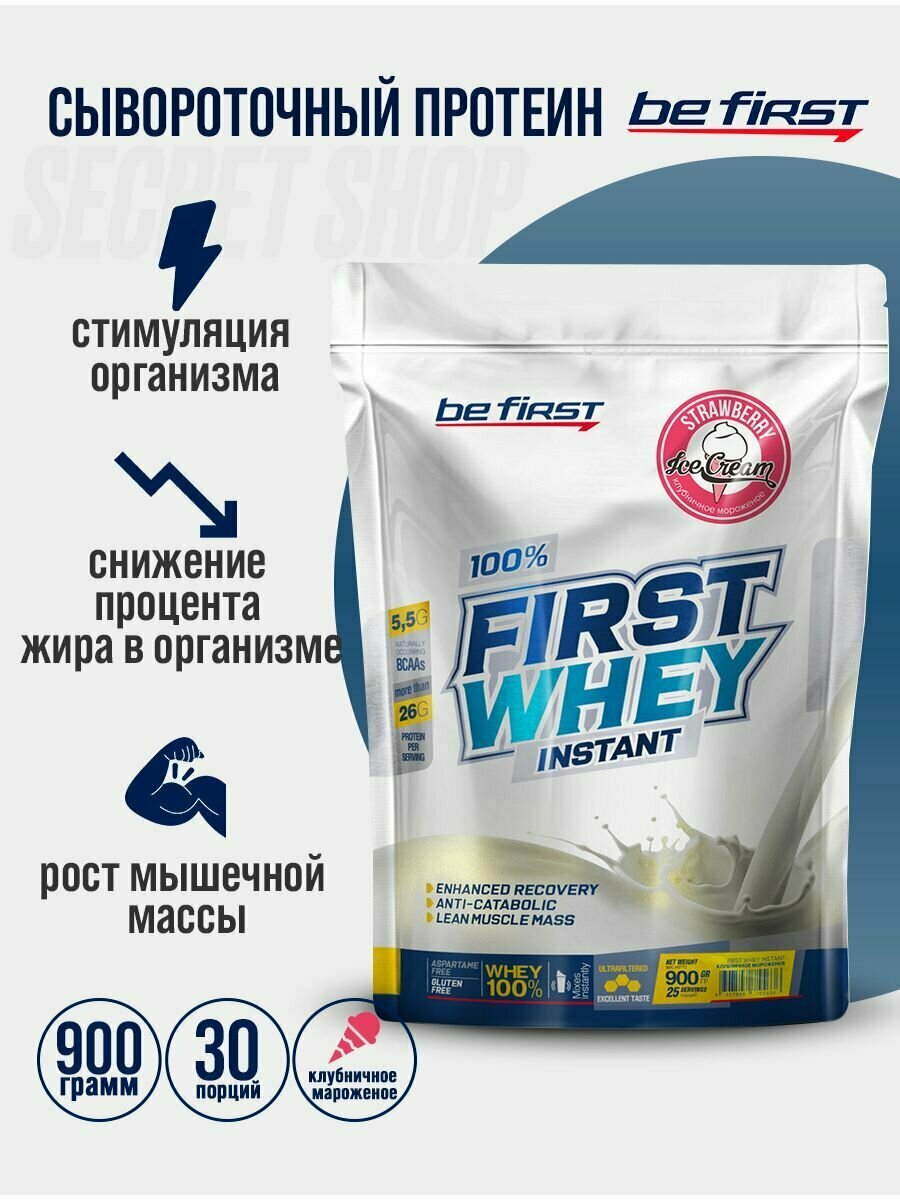 Купить BeFirst, First Whey Instant, 900г (клубничное мороженое)