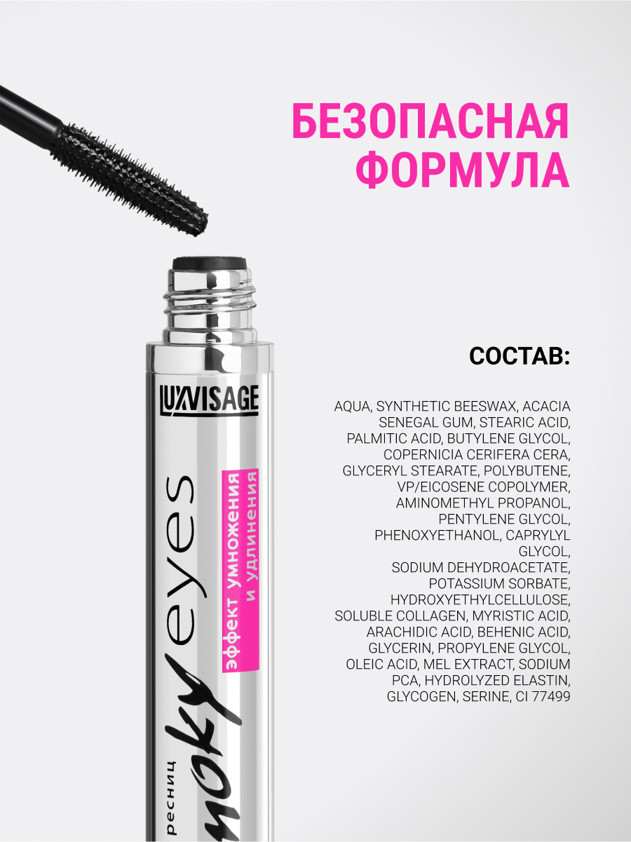 Купить Тушь для ресниц `LUXVISAGE` SMOKY EYES эффект умножения и удлинения (черная)