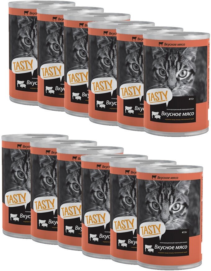 Купить TASTY для кошек с мясным ассорти в соусе банка (415 гр х 12 шт)