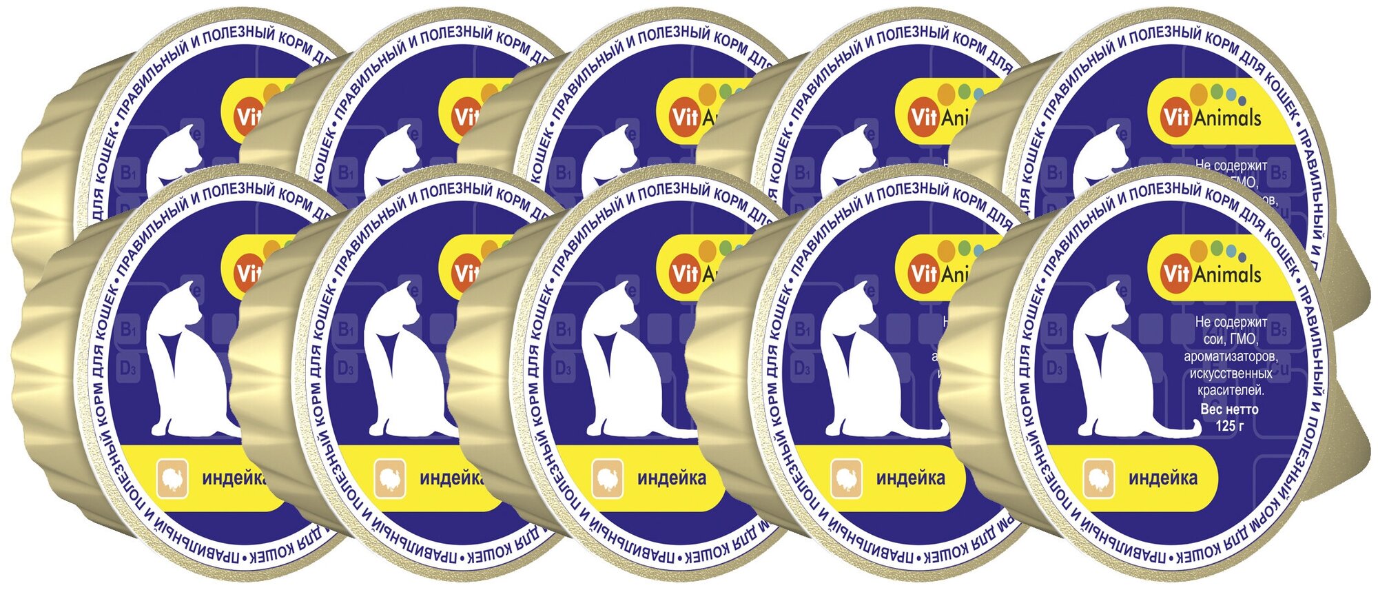 VitAnimals влажный корм для взрослых кошек с индейкой, в ламистерах - 125 г х 10 шт