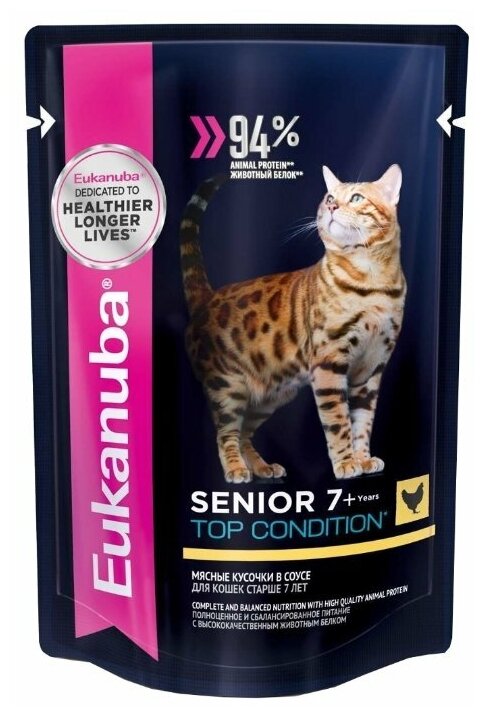 Eukanuba SENIOR TOP CONDITION CHICKEN пауч влажный корм для кошек старше 7 лет, курица в соусе, 85 гр