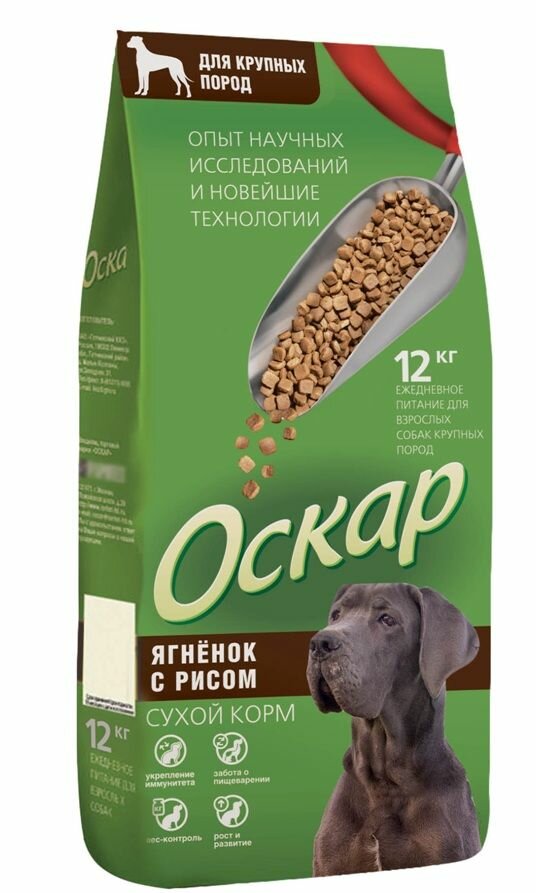 Корм сухой Оскар, с мясом Ягненка и рисом, для взрослых собак крупных пород, 12 кг
