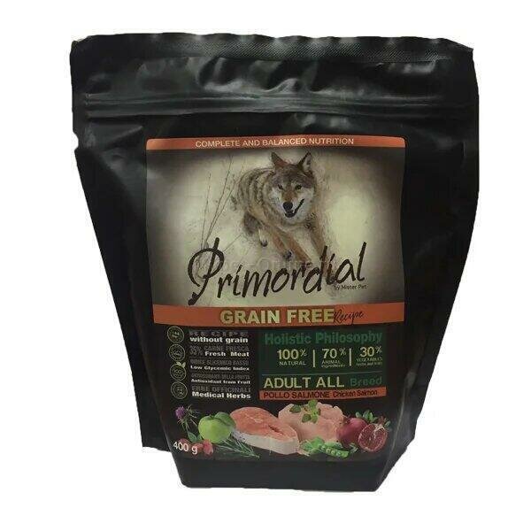 PRIMORDIAL 400г корм сухой для собак беззерновой курица лосось 1х10, шт