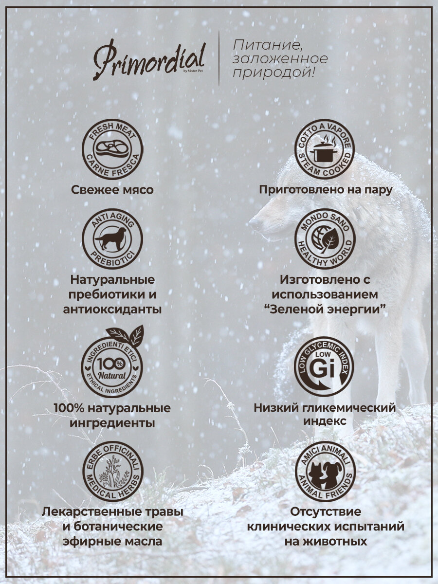 PRIMORDIAL ADULT ALL BREED беззерновой для взрослых собак всех пород с форелью и уткой (0,4 кг)