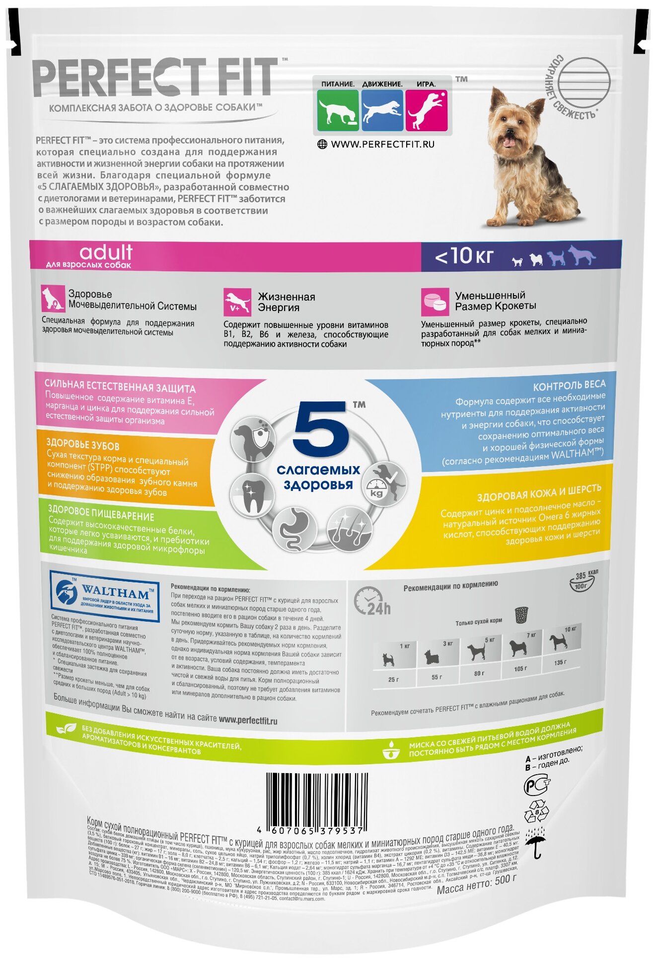 Perfect Fit Сухой корм для взрослых собак мелких и миниатюрных пород, с курицей 10166115, 0,5 кг, 40714 (6 шт)