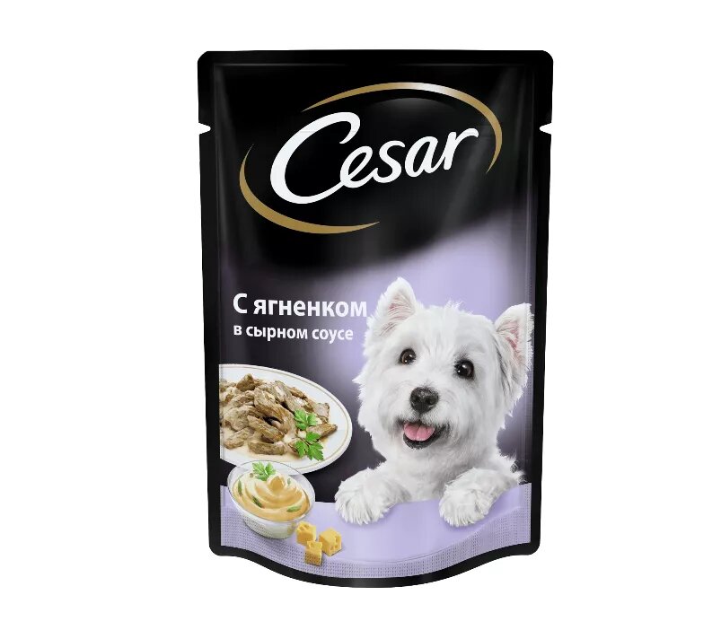 Влажный корм Cesar для собак, ягненок в сырном соусе, пауч, 85 г