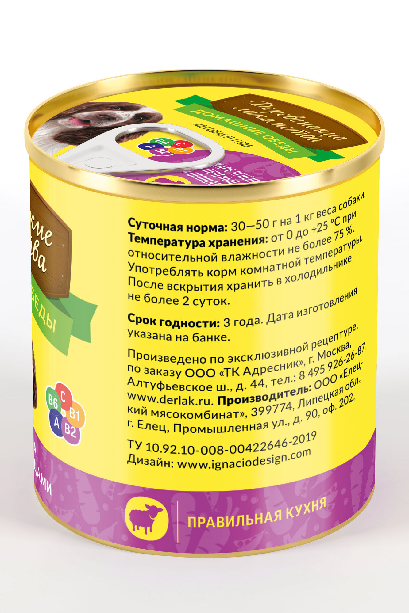 Деревенские лакомства консервы для собак "Домашние обеды", каре ягненка с печенью и овощами, 240 гр