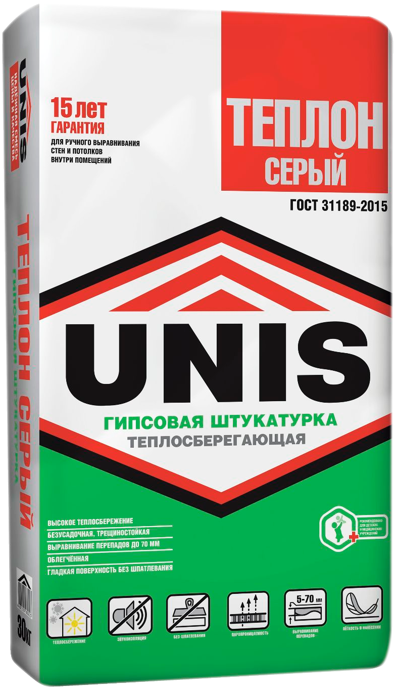Штукатурка базовая гипсовая UNIS Теплон Армированный 30 кг интересное: