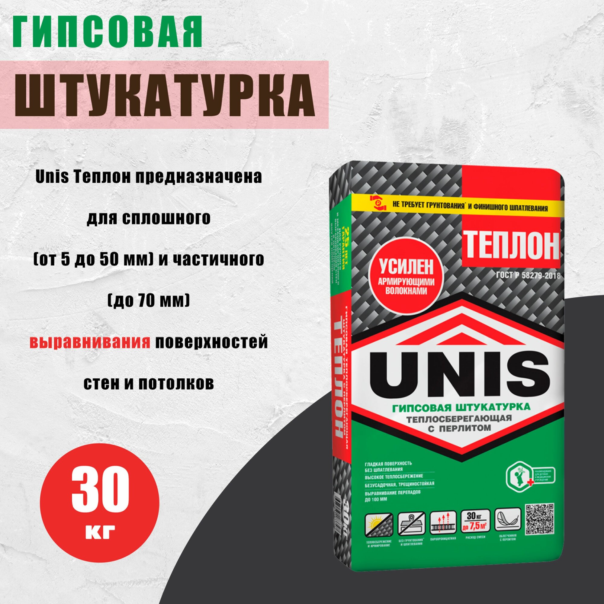 Купить Штукатурка базовая гипсовая UNIS Теплон Армированный 30 кг