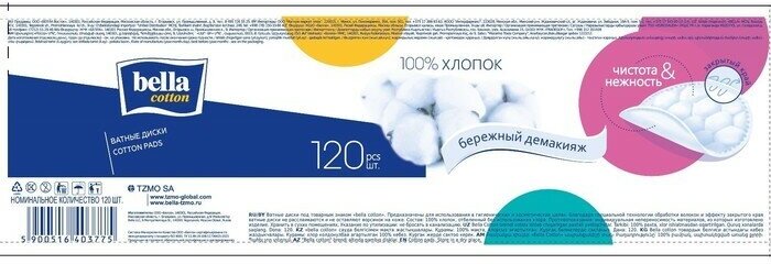Ватные диски bella cotton/ из 100% хлопка, 120 шт.