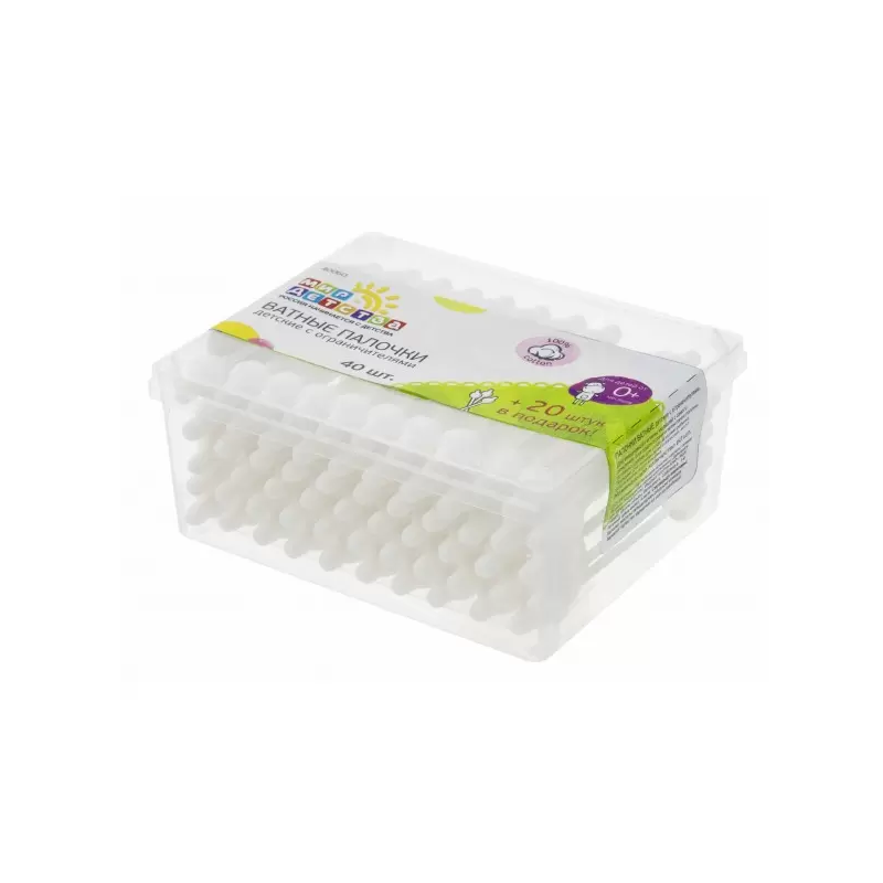 Купить Мир Детства Ватные палочки с ограничителем 60шт