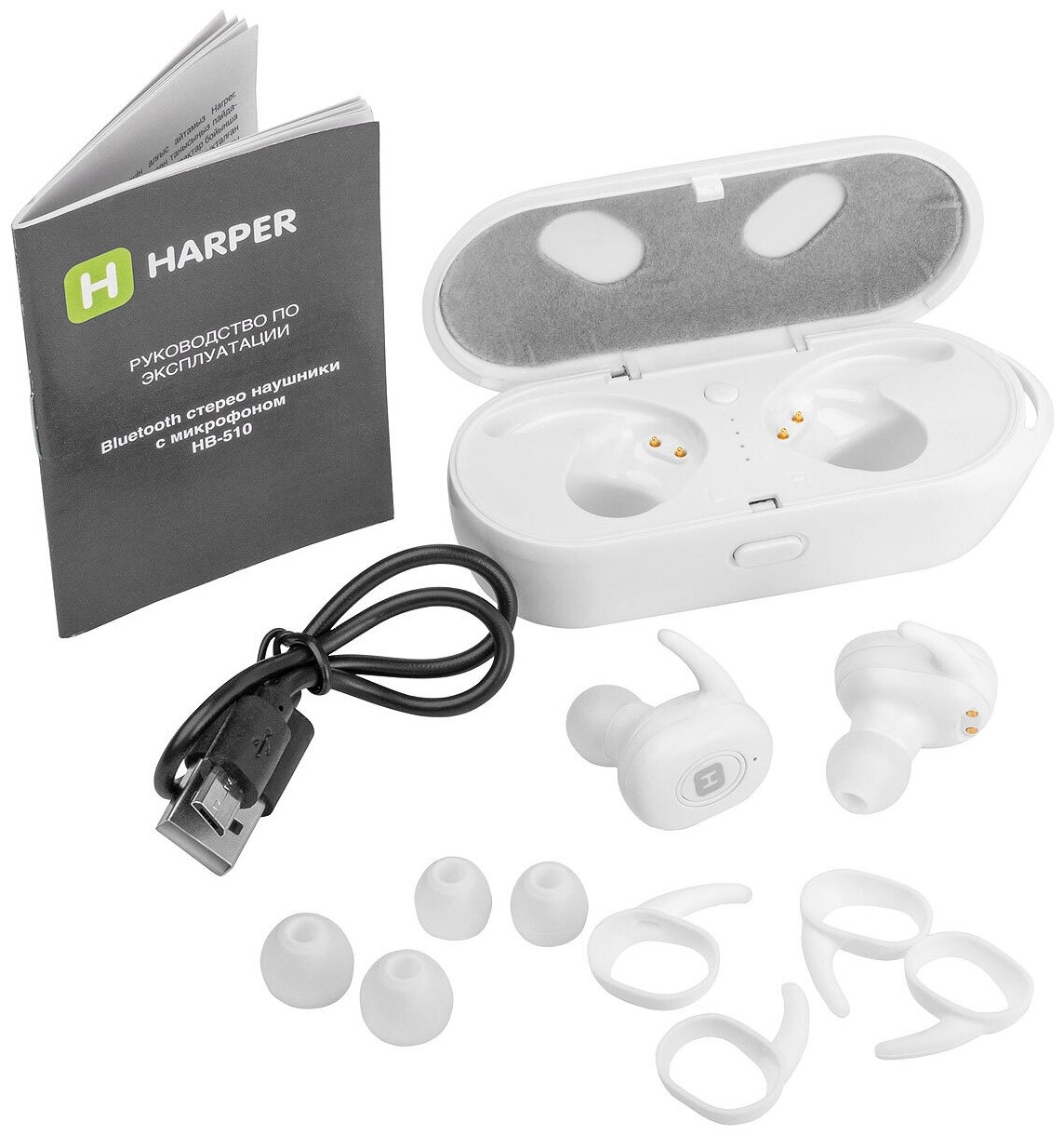 Купить Гарнитура HARPER HB-510 TWS, Bluetooth, вкладыши, белый [h00002182]