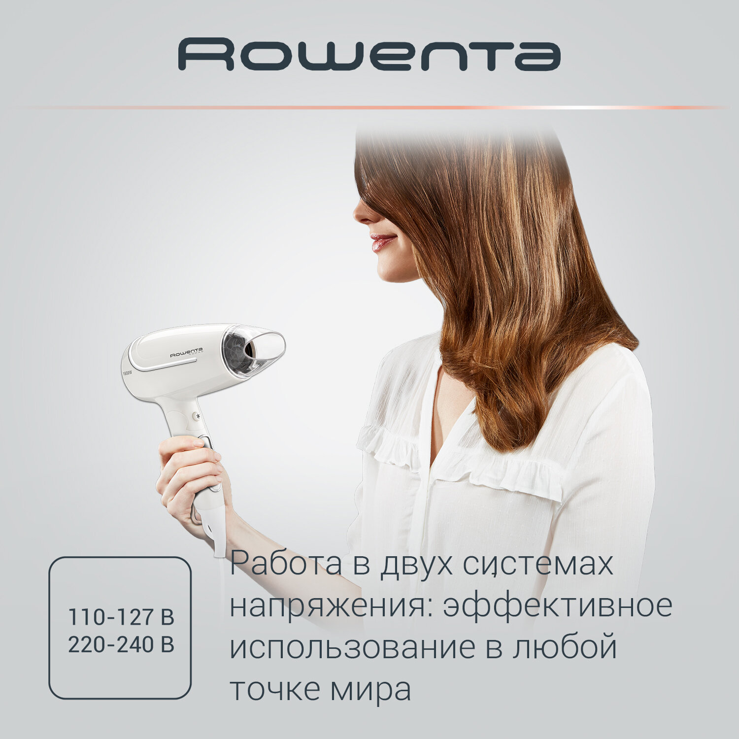Фен Rowenta CV3320 белый, компактный, 1600 Вт, подача холодного воздуха, шнур - 1.8 м интересное: