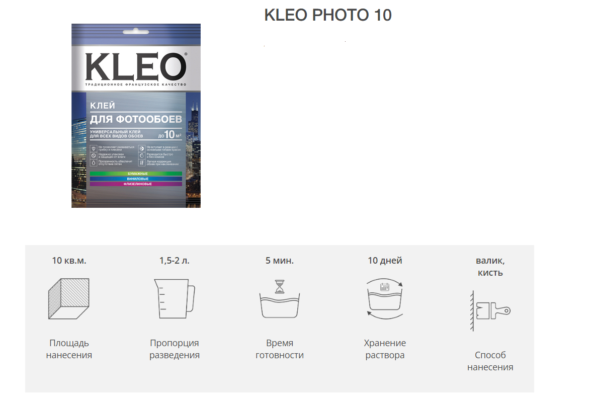 Ниже Вы можете прочитать отзывы на Клей для фотообоев Kleo 10 м², ознакомится с подробными характеристиками, посмотреть интересные обзоры и фотографии на Клей для фотообоев Kleo 10 м².