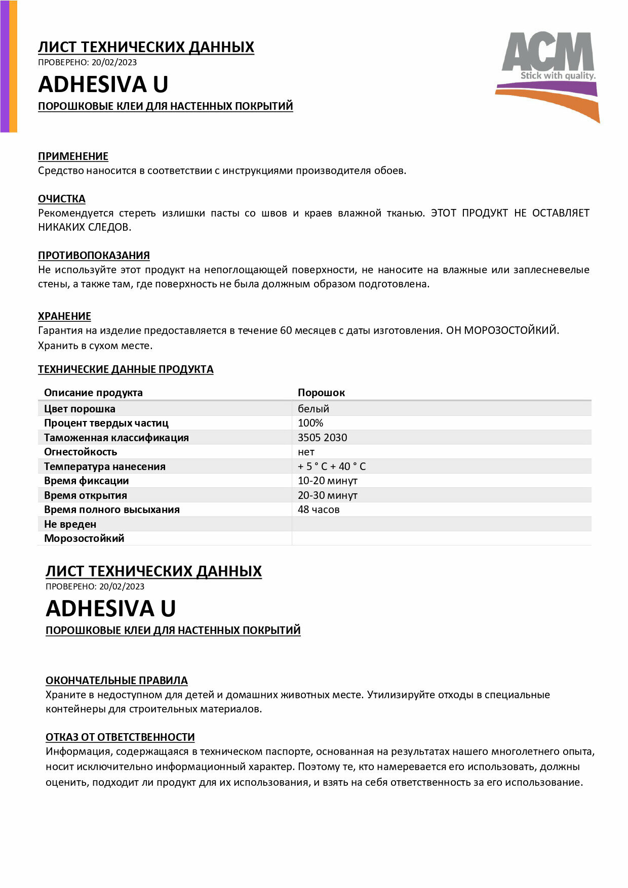 Клей для всех типов обоев ACM Adhesiva U Универсальный 0.25 кг