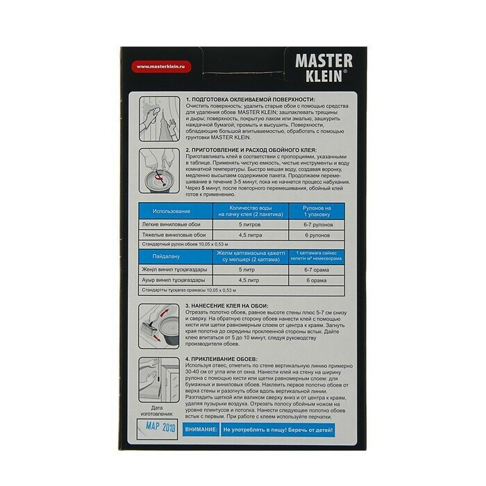 Клей обойный для виниловых обоев Master Klein 200гр коробка