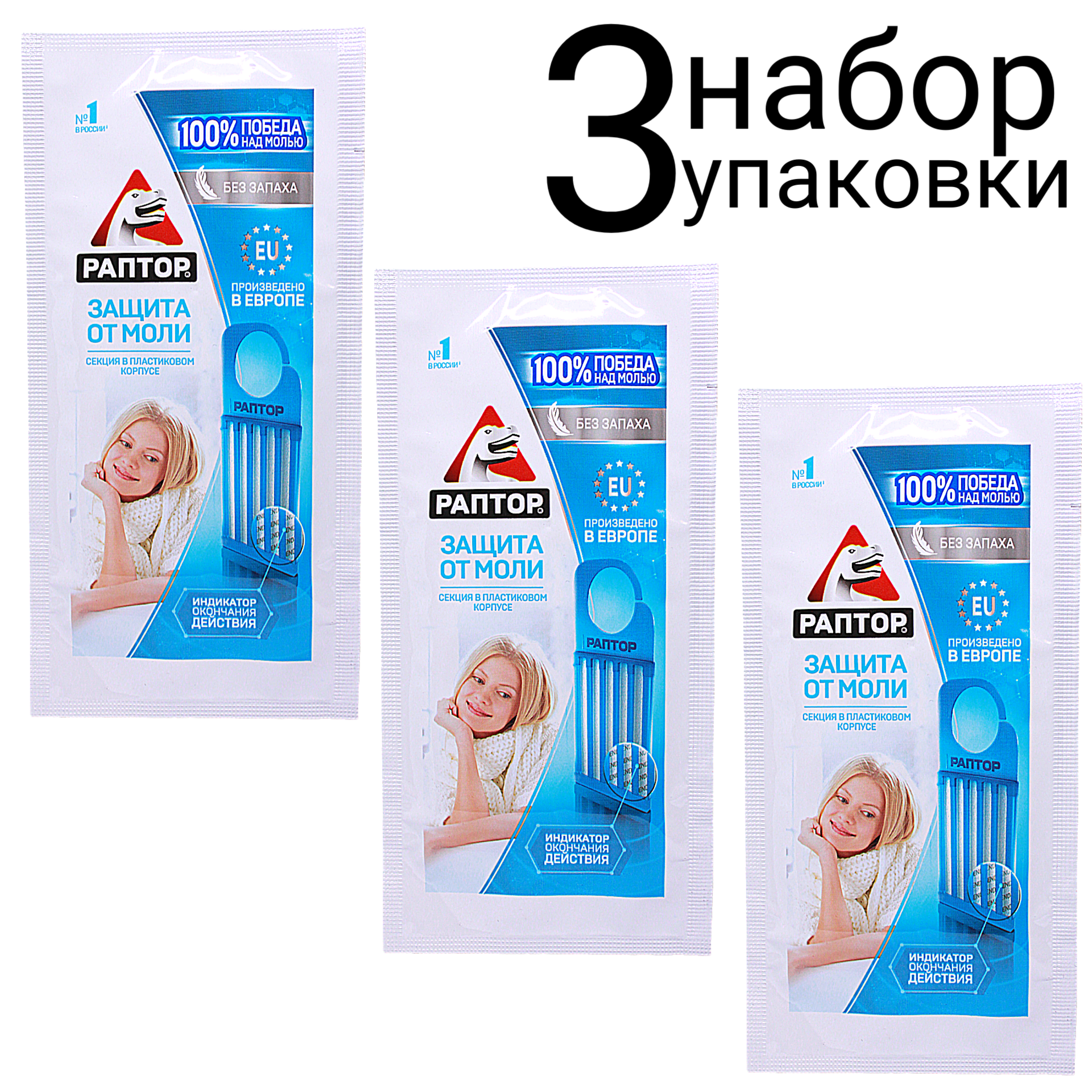 Секция от моли без запаха, Раптор - средство от моли, Комплексная защита, 3 шт.