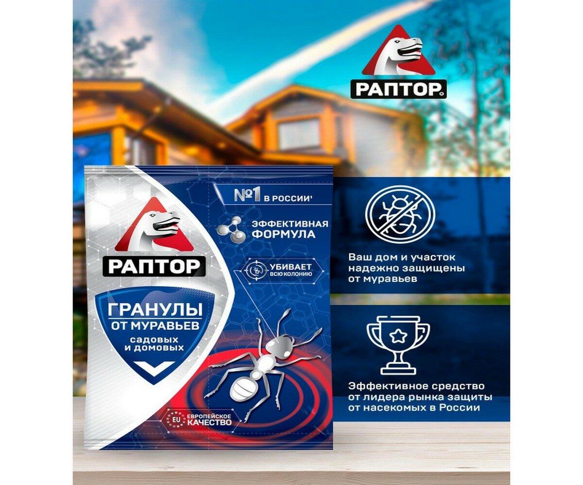 Средство от насекомых раптор от муравьев в гранулах саше, 100гр