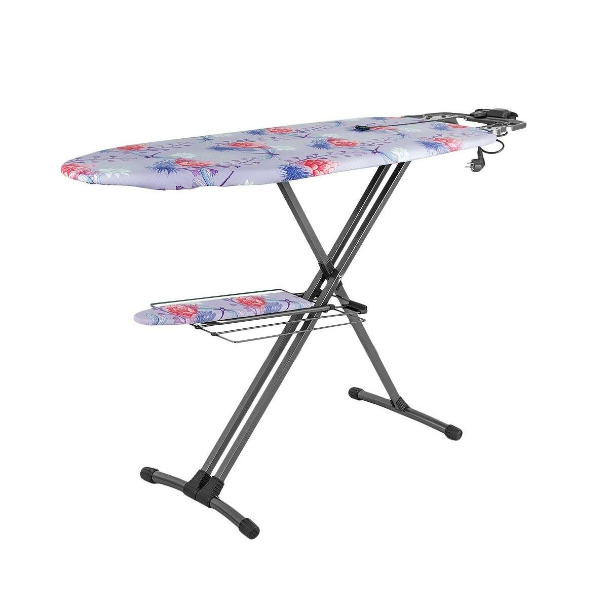 | Плюсы: | Дизайн, ширина, держатель шнура, розетка, регулируемая высота, основа лист металла с отверстиями, чехол с паралоном, в комплекте досочка для рукавов. |