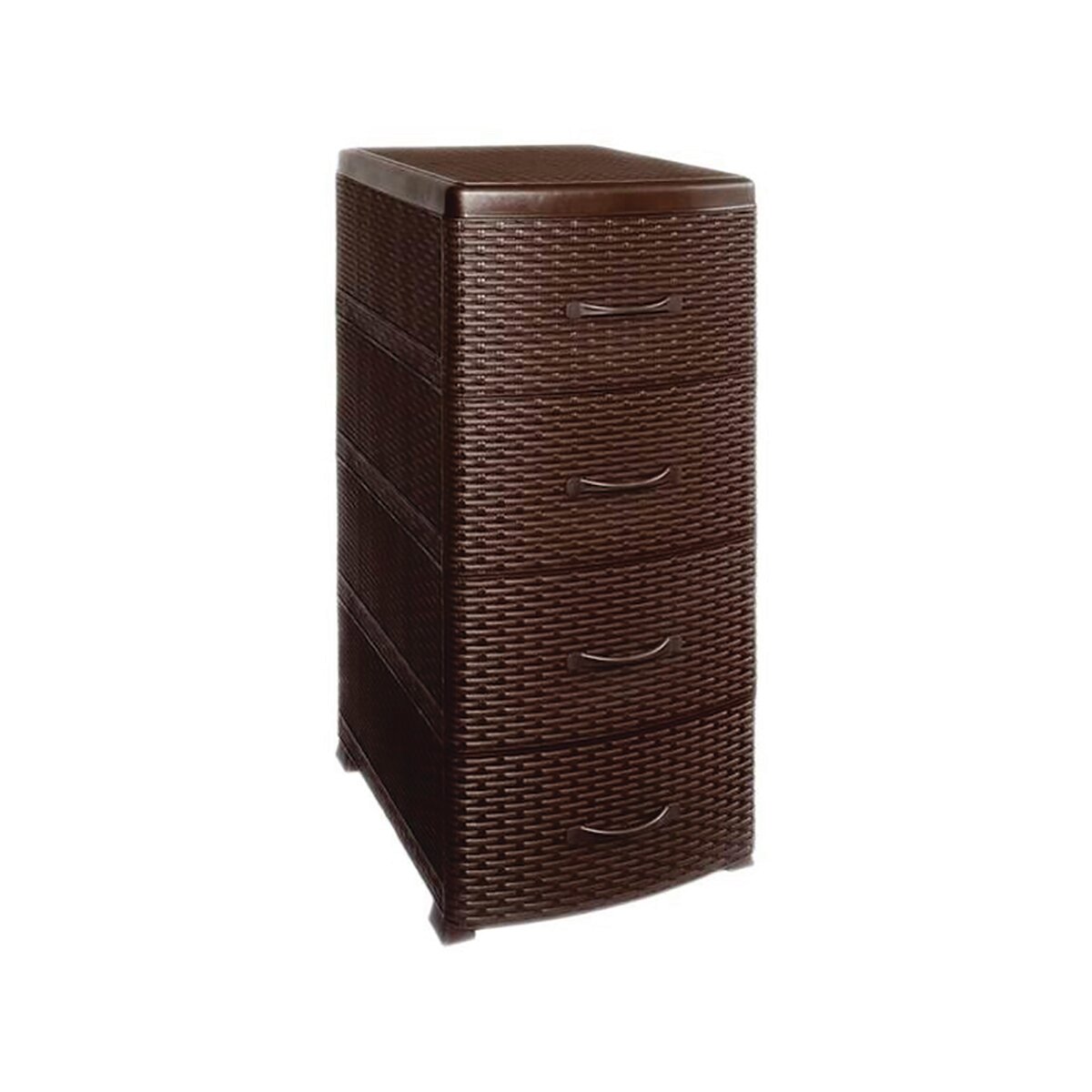 Комод пластиковый Ротанг с 4 ящиками, цвет коричневый / узкая мебель для хранения вещей