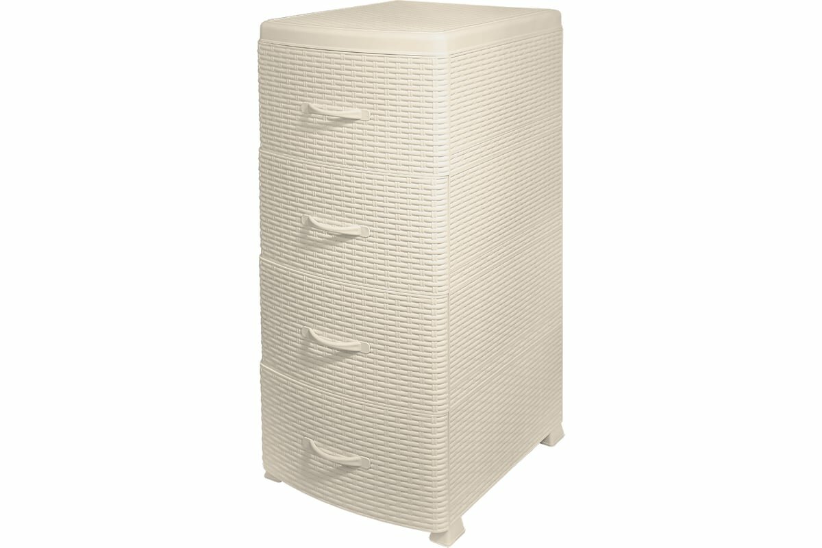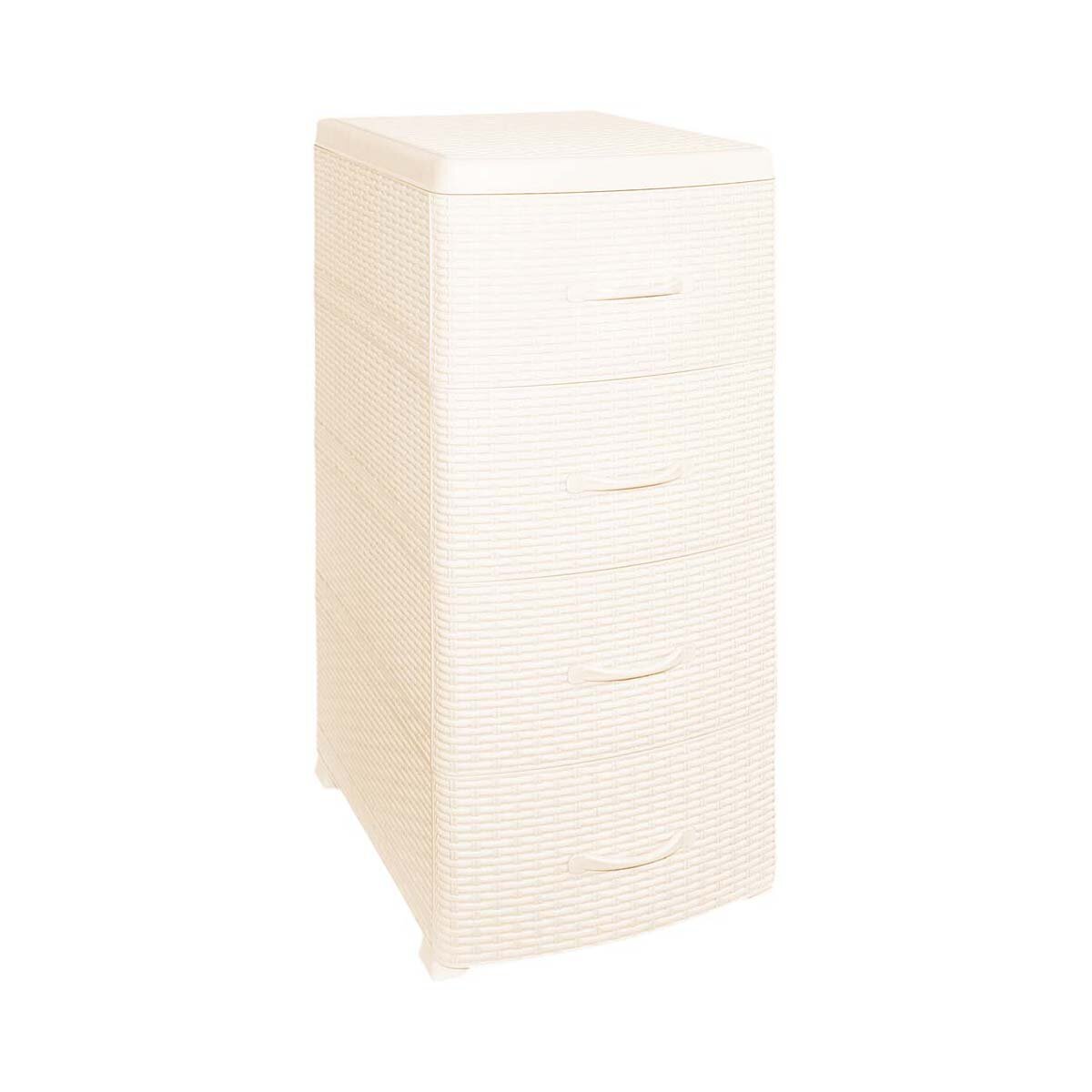 Комод пластиковый Ротанг с 4 ящиками, цвет слоновая кость / узкая мебель для хранения вещей