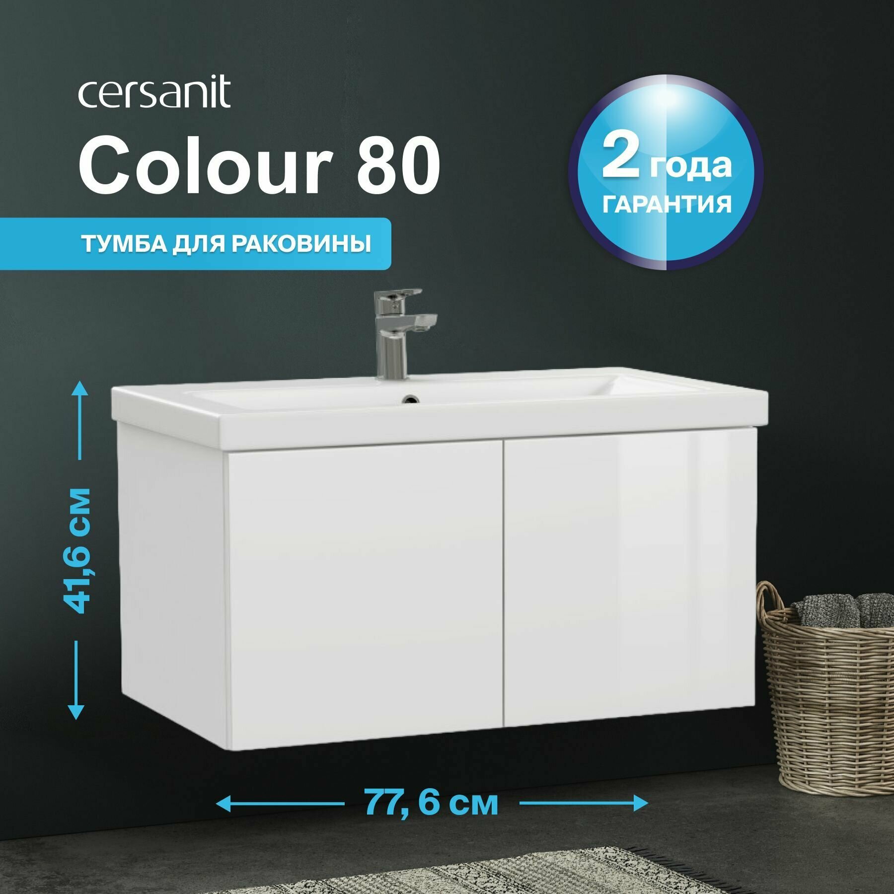 Тумба для ванной комнаты, под раковину Cersanit Colour с двумя дверками, ШхГхВ: 79.4х44.7х41.6 см, цвет: белый 80
