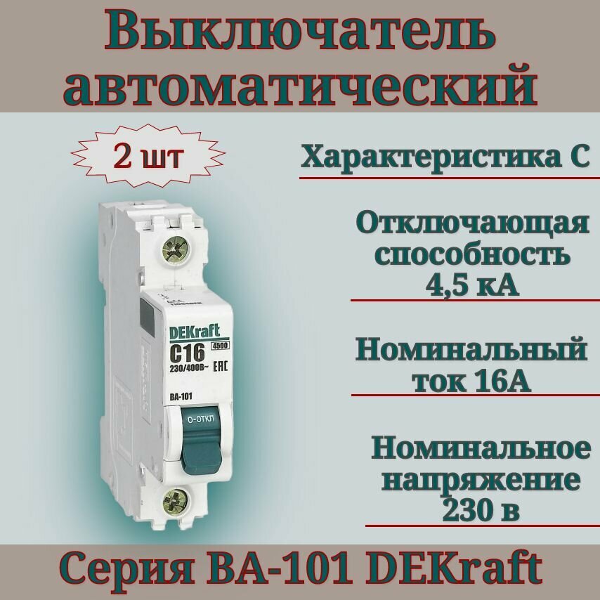 Купить Выключатель автоматический (2шт) 1п 16А С 4,5кА DEKraft 11054DEK автомат однополюсный