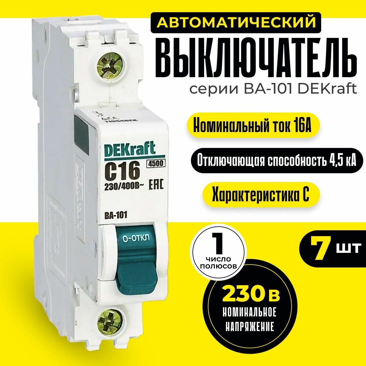 Купить Выключатель автоматический (7шт) 1п 16А С 4,5кА DEKraft 11054DEK автомат однополюсный