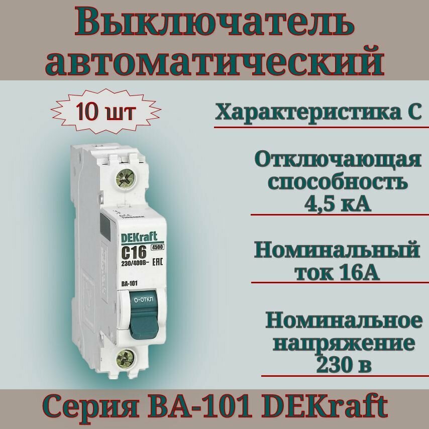 Купить Выключатель автоматический (10шт) 1п 16А С 4,5кА DEKraft 11054DEK автомат однополюсный