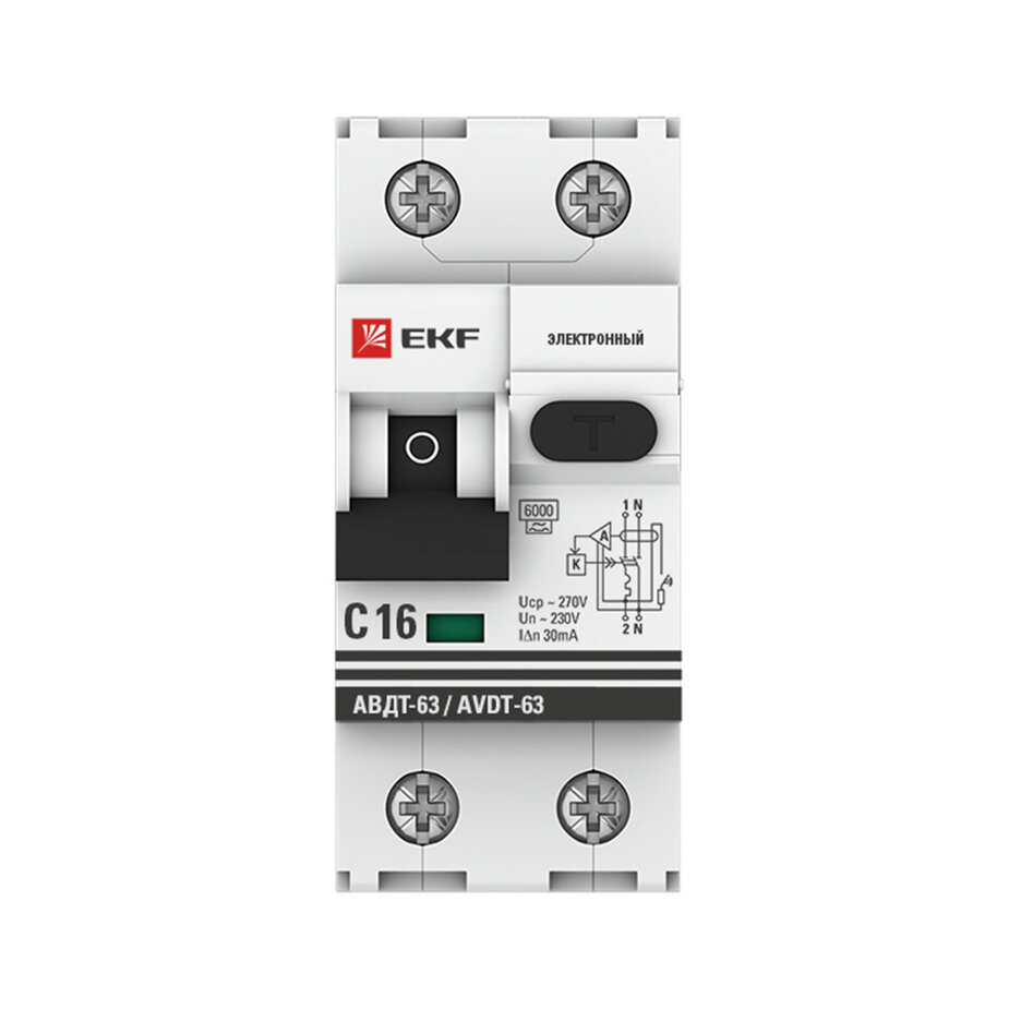 Выключатель автоматический дифференциальный АВДТ-63 1п+N 16А C 30мА тип A PROxima (электронный) | код. DA63-16-30e | EKF ( 1шт. )