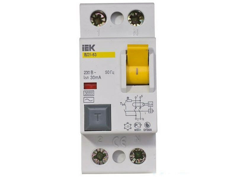 Выключатель дифференциальный (УЗО) IEK ВД1-63 2Р, 25А, 30мА, тип AC
