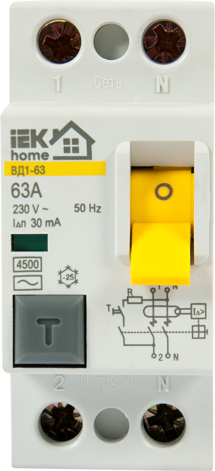 Купить УЗО IEK Home ВД1-63 1P N 63 А 30 мА 4.5 кА AC MDV10-2-063-030