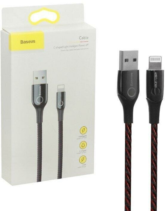 Кабель USB BASEUS C-shaped Light, USB - Lightning, 2.4А, 1 м, черный, интеллектуальный