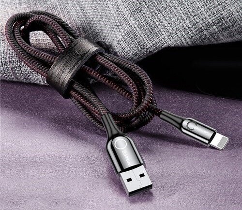 Кабель USB - Lightning 1м Baseus C-shaped Light Intelligent Power-off - Черный (CALCD-01)
