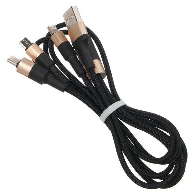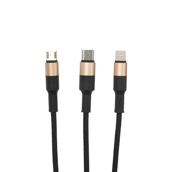 Кабель USB HOCO X26 Xpress 3 в 1 для Lightning, Micro USB, Type-C, 2.0A, 1 м, черный с золотым