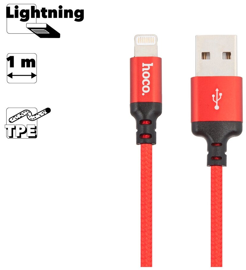 HOCO / Кабель для зарядки / Кабель для зарядки iP Lightning /2м плетеный красно-черный X14