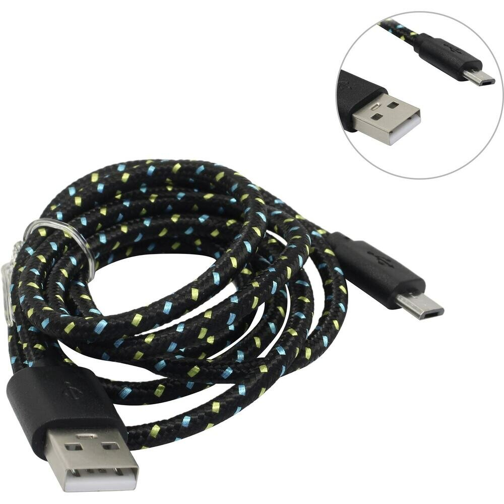 Data-кабели Defender Кабель Defender USB08-03T, USB - microUSB, 1 м, тканевая оплётка, чёрный