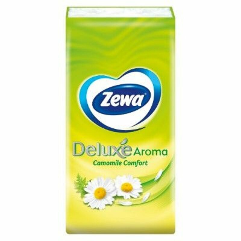 Zewa Платочки бумажные носовые Deluxe Aroma Ромашка, 3-х слойные, 10 шт в уп. /