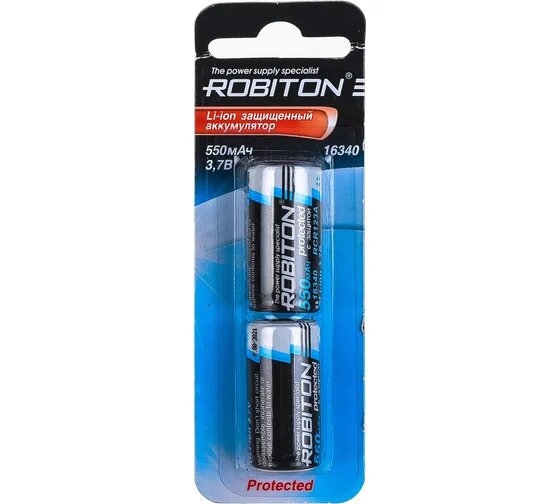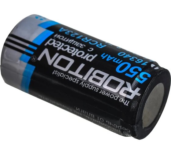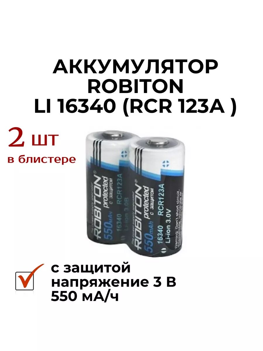 Аккумулятор ROBITON Li-Ion 16340 (RCR 123A), 3.7 В, 550 мАч, с защитой BL2
