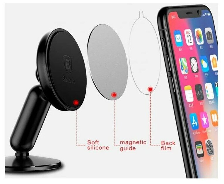 Держатель для смартфона в авто "Baseus Suyzd-0S" сверх сильные магниты, на панель приборов