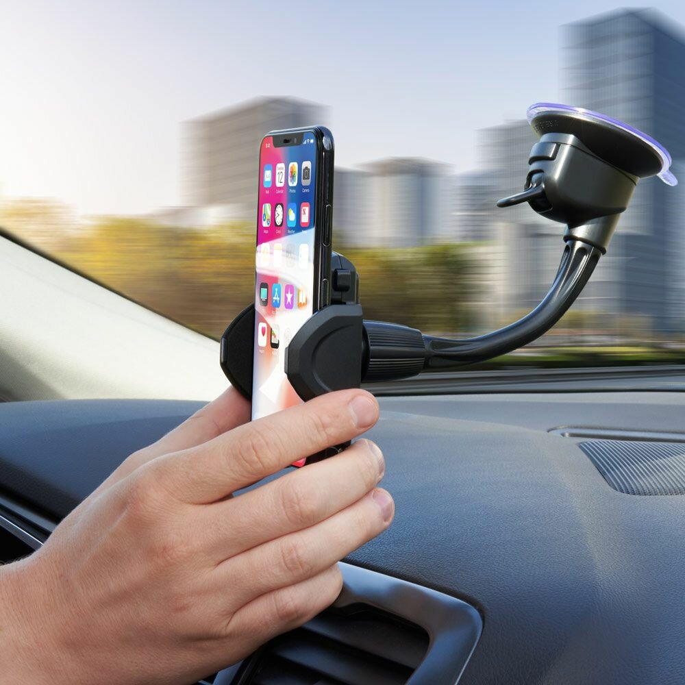 Автомобильный держатель для смартфонов 3"-6.9", PU присоска + крепление на решетку, гибкая штанга