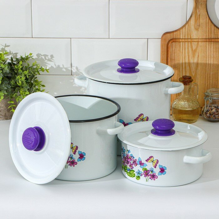 Набор кастрюль "Фиалка", 3 предмета: 2 л, 3,5 л, 5,5 л, посуда для приготовления пищи