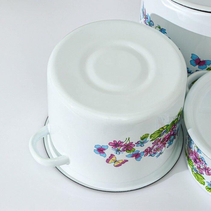 Набор кастрюль "Фиалка", 3 предмета: 2 л, 3.5 л, 5.5 л, эмалированные крышки, индукция, цвет белый