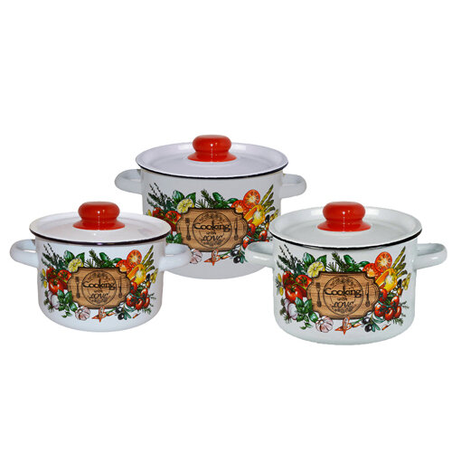 Набор кастрюль Вологда, 3 шт: 1,5/2,9/3,9 л стальэмаль 1070009 .