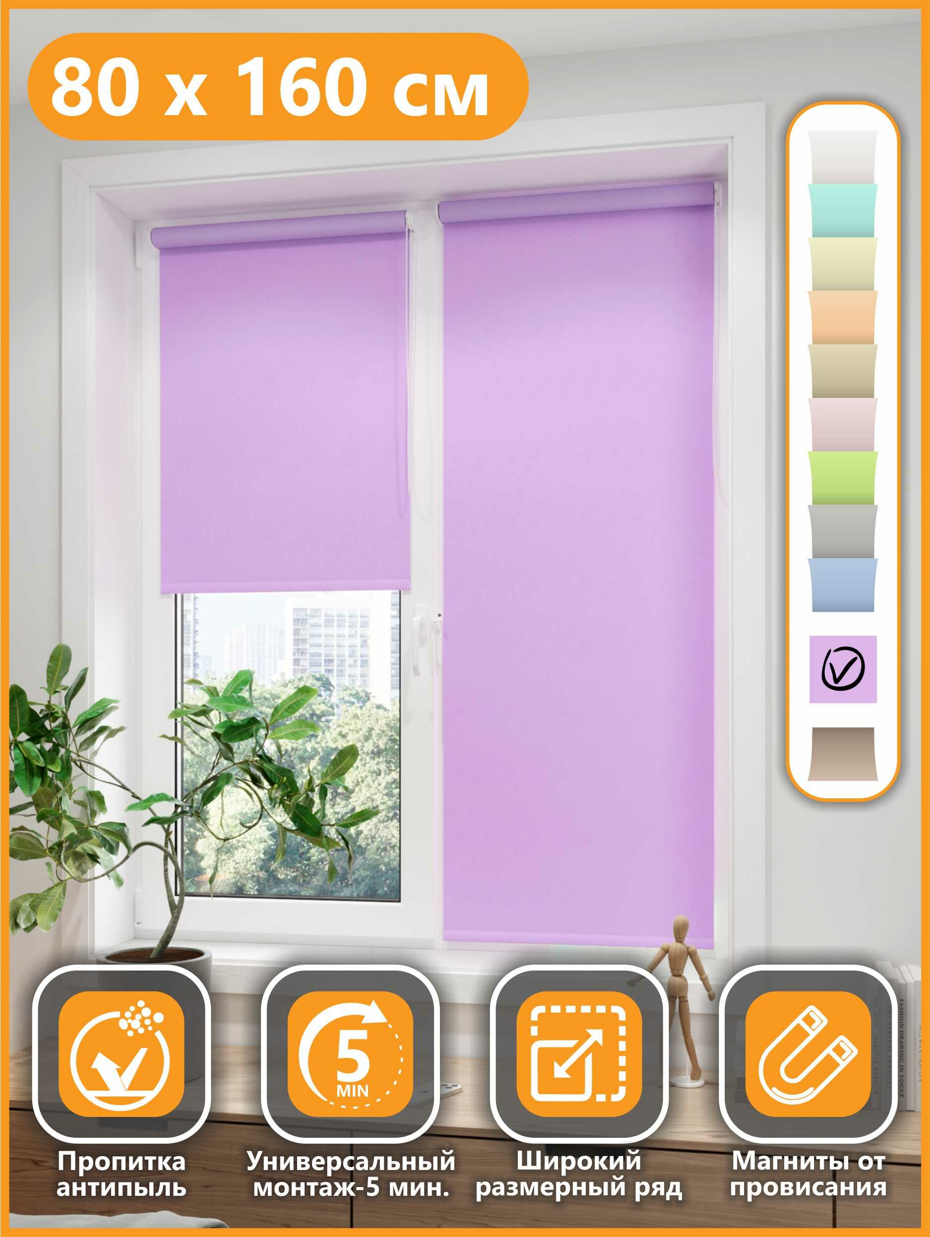 120*160 Универсальная рулонная штора с/з 80%, Однотонный Лиловый 68446