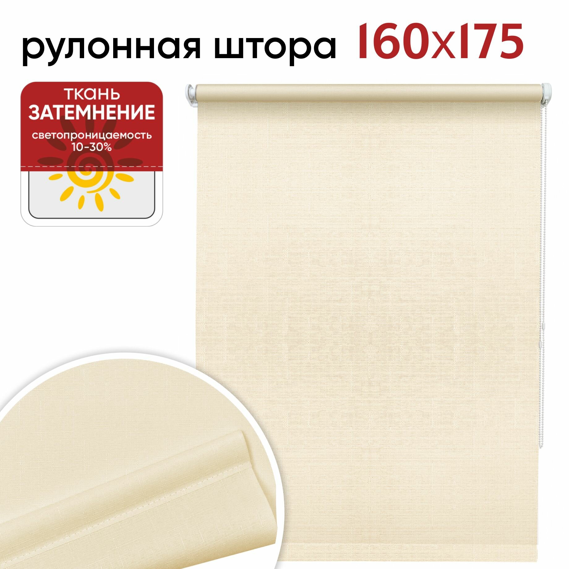 Рулонные шторы УЮТ 160 см высота 175 см бежевый Шантунг, рольштора полиэстер, затемнение 70%