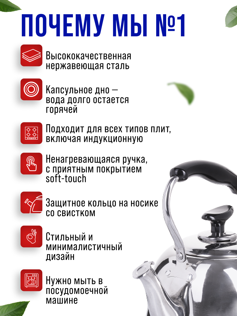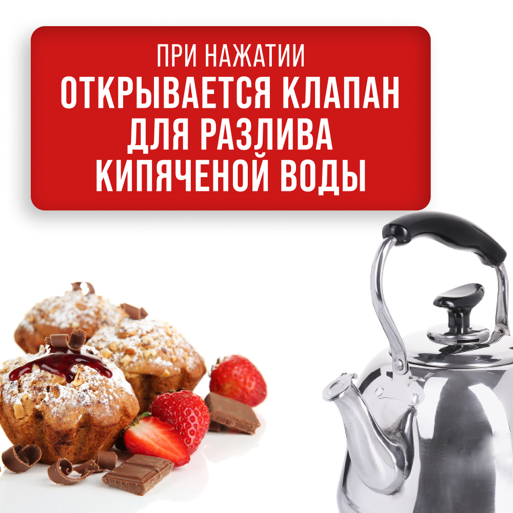 | Минусы: | Не свистит. Чтобы засвистел, вода должна кипеть, как в паровозном котле. |