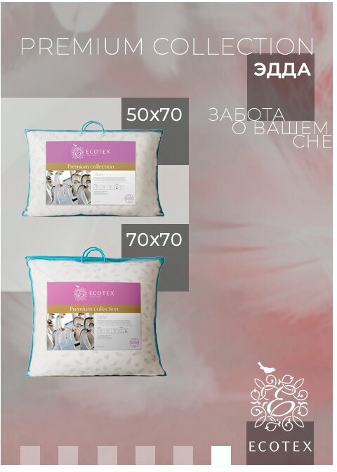 Ниже Вы можете прочитать отзывы на Подушка Ecotex Эдда 50x70, пух первой категории ЭПП57, ознакомится с подробными характеристиками, посмотреть интересные обзоры и фотографии на Подушка Ecotex Эдда 50x70, пух первой категории ЭПП57.