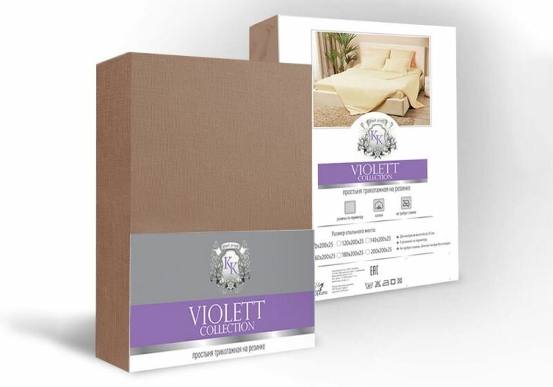 Простыня на резинке Kupu-Kupu простынь, трикотаж , 200 х 200 x 25 см, Шоколадный