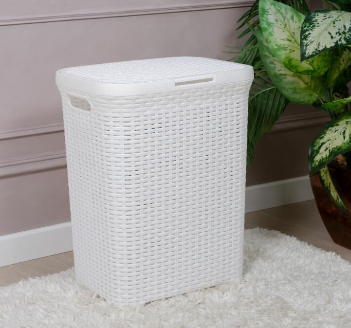Корзина для белья прямоуг. 40 Л "ротанг" (белая) С крышкой (1/10) "виолет"